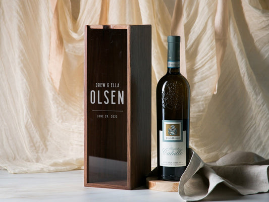 Acrylic Lid Wine Box (Design 1) - Stylish Custom Walnut Wood Champagne Box Engagement Wedding Anniversary Birthday Gift for Bride & Groom