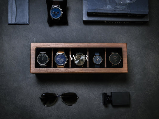 Wide Wood Watch Box (Design 2) - Personalized Watch Display Case Storage for Men Dad Husband Boyfriend Fiancé Father In Law, Teacher Gift