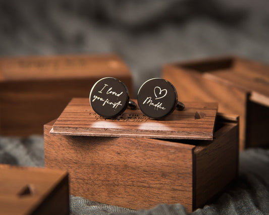 Metal Cufflinks & Tall Walnut Box SET - Custom Wedding Gift for Groomsmen Best Man Proposal, Gift for Husband Dad Father of the Bride Groom
