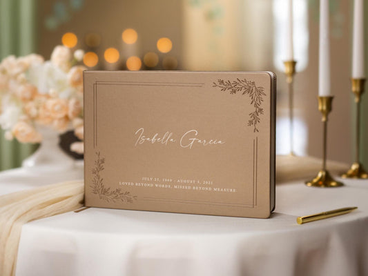 Floral Frame Funeral Guest Book (Design 1) - Personalized Celebration of Life Guestbook MemorIal Service Book of Condolence Memory Table