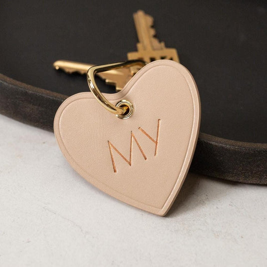 Embossed Heart Leather Keychain - genuine leather, modern key rings, custom monogrammed cute personalized key chain gift, girlfriend wife