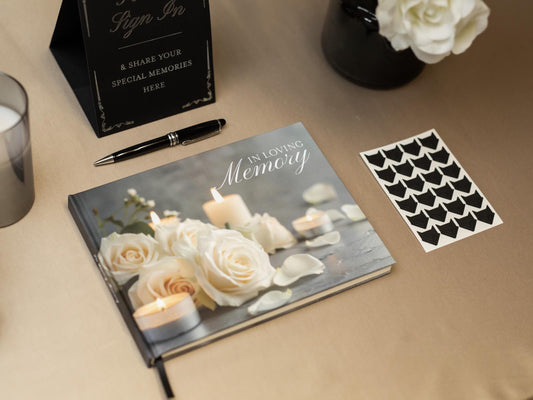 Rose Photo Hardcover Funeral Guest Book Set - Comes with pen, photo corners, sign, box, Celebration of Life Memorial Service Condolences RTS