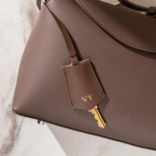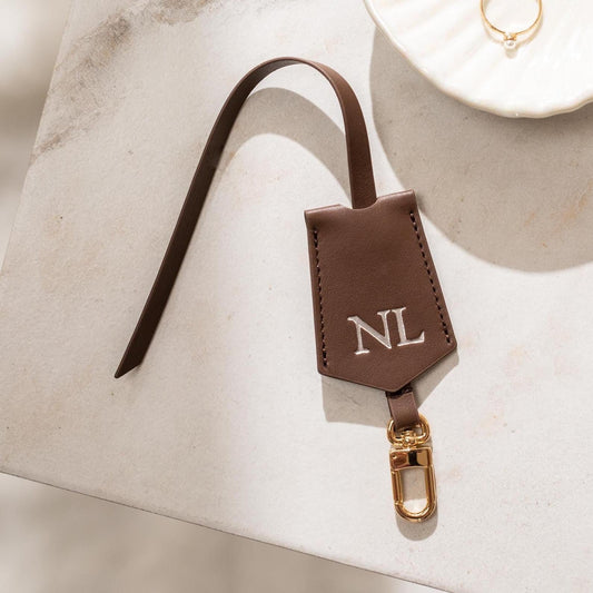 Embossed Leather Clochette (XS Initials) - Bell Key holder personalized bag tag purse charm tote accessory custom monogrammed gift for her