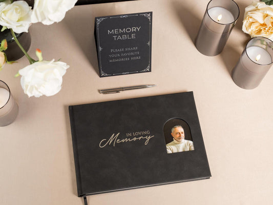 Ready To Ship Photo Insert Cover Funeral Guest Book Set - Celebration of Life, Memorial Service Book, Gift for Loss of Loved One Condolences
