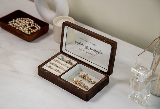 Wood Jewelry Box w/ Glass Lid (Design 1 Black) - Custom Wood Women's Ring Earrings Bracelet Case Storage Holder Organizer Girlfriend Gift