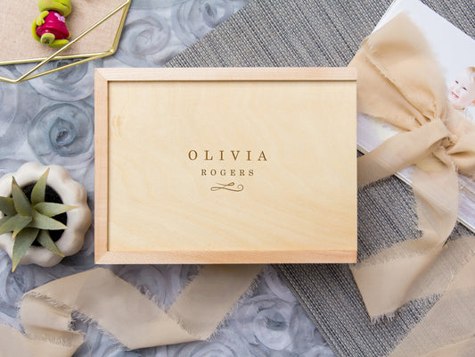 4x6" Photo Memory Box in Maple Wood - Photography Session Picture Box, Print Storage, Custom Gift Box for Christening Birthday New Parents