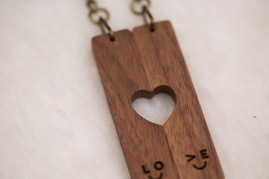 Engraved Heart Keychain Sets - LOVE Smiley Emoji Matching Set of 2 Split Heart Wooden Key Rings with Magnets For Boyfriend Girlfriend