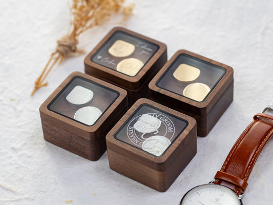 Square Cufflinks Box w/ Glass Lid Only ( Cufflinks NOT included ) - Wedding Day Cuff links Gift Husband Dad Groomsmen Father of Bride Groom