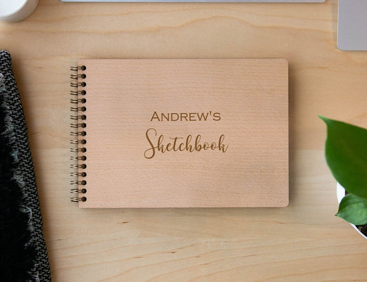 Engraved Sketchbook - Custom Wood Spiral Notepad Simple Hardcover Writing Drawing Children Birthday Interior Graphic Novelist Designer Gift