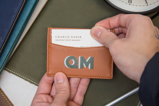 Embossed Leather Card Holder - Custom Monogram Name Initials Slim Money ID Wallet, Birthday Wedding Travel 3rd Anniversary Gift Him Her