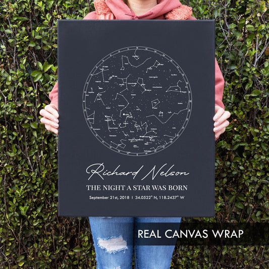 Black Canvas Star Map - Wall Art of Any Date, Girlfriend Boyfriend Birthday, Wedding Anniversary for Husband Wife, Baby First Birthday Gift