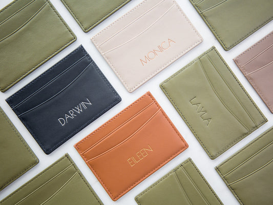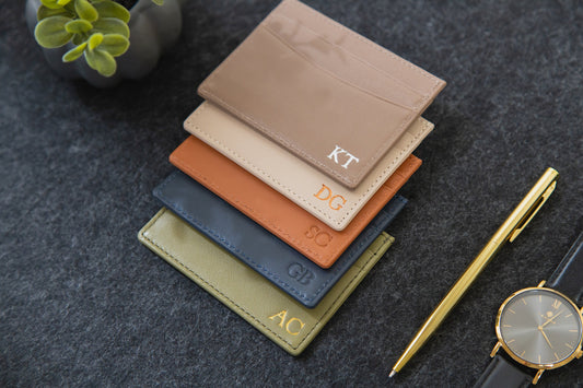 Embossed Leather Card Holder - Custom Monogram Name Initials Slim Money ID Wallet, Anniversary Gifts, Personalized Husband Boyfriend Gift