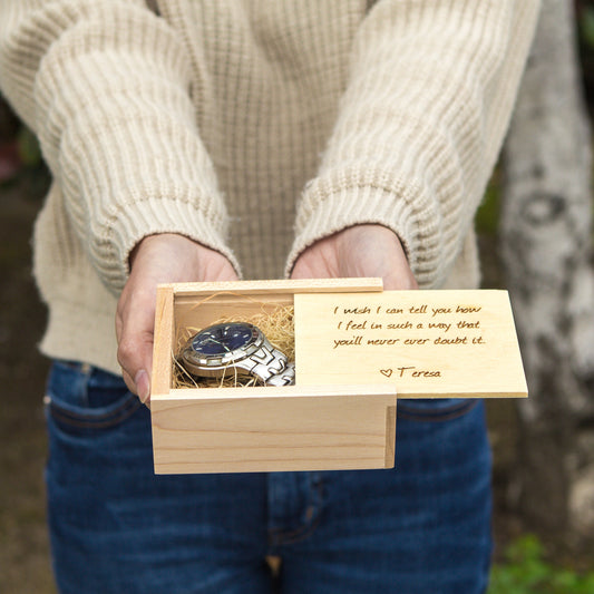 Square Maple Gift Trinket Box - Personalized Small Jewelry Gift Box, Necklace Bracelet Wood Storage, Custom Message for Teacher Appreciation