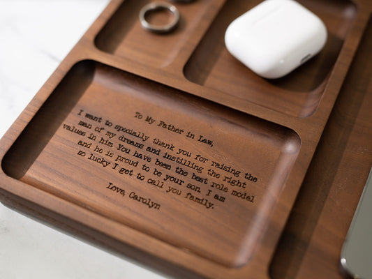 Rectangle Organizer Catchall D1 - 8.5x11.5" Large Wood Engraved Tray, Home Work Office Table Charger Station, Custom Message for Mom or Dad