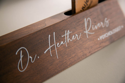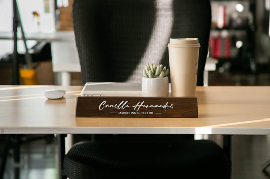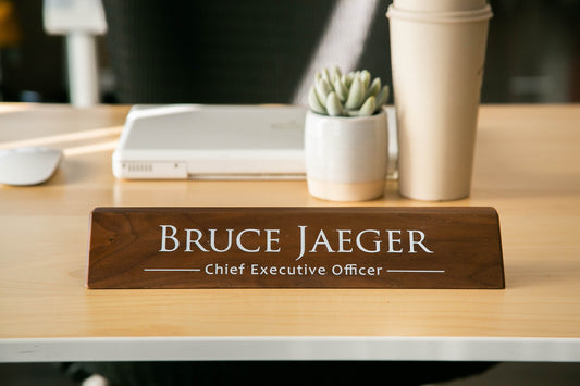 Show your appreciation with personalized office gifts that make every workday better. Our handcrafted wood name signs and premium leather desk mats bring personality and professionalism to any office, home workspace, or executive suite.