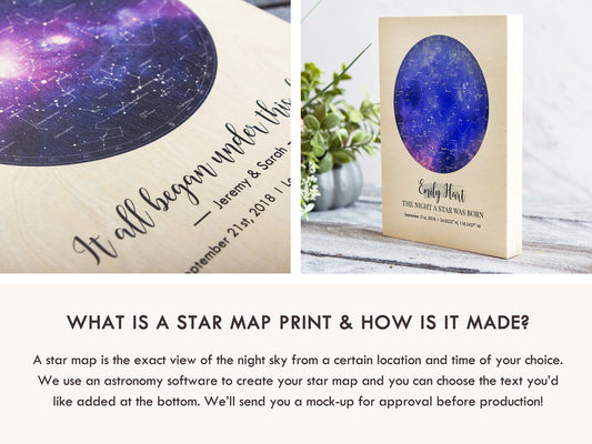 Star Map Printed on Wood - Wall Art Decor of any Memorable Date, Wedding Anniversary Gift for Husband Wife, Engagement Gift for Couples