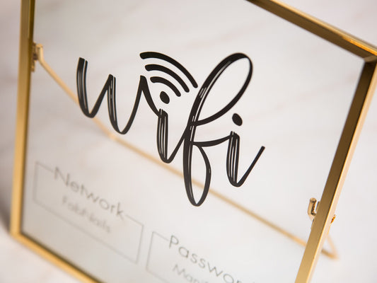 Gold Glass Wifi Sign - 6.5x7.75 Custom Wifi Table Sign, Home & Airbnb Rental, Business Office Lash Nail Hair Salons Restaurants Signage