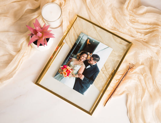Gold Glass Frame - Photo Printing Optional, Romantic Birthday Engagement Wedding Gift for Couples, Floating Picture Display Frame Decor