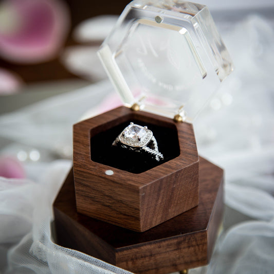 Hexagon Mini Flip Ring Box w Clear Acrylic Lid - Single Ring Engagement Ring Box, Wedding Ring Holder, Proposal Ring Box, Gift for Her