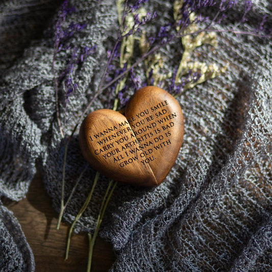 Heart Flip Ring Box - Engraved Secret Slim Wooden Engagement or Wedding Ring Box, Romantic Heart Shaped Proposal Prop Decor Love Gift