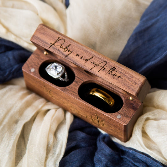 Premium Flip Ring Box XL - Engraved Single Ring Proposal Engagement Ring Box, Wedding Ring Bearer, Pocket Sized Secret Ring Holder