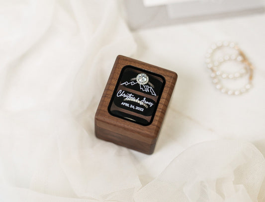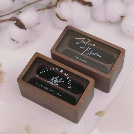 Triple Flip Wood Ring Box with Glass Lid - UV Printed Ring Box for 3 Rings, Wedding Ceremony Ring Bearer Box, Engagement Ring Storage