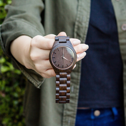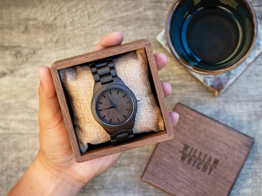 Engraved Wood Watch & Walnut Gift Box - Mens Watch, 5th Anniversary Gift Husband, Father of Bride Groom Dad Son Brother, Wedding Travel Gift
