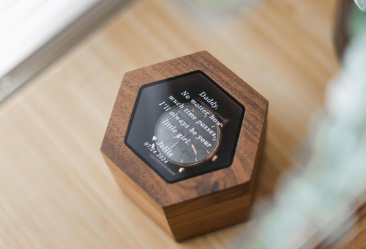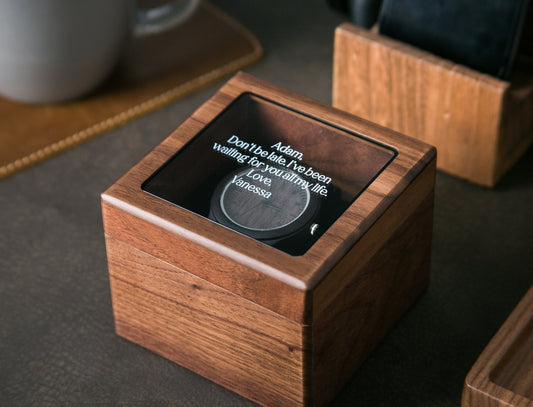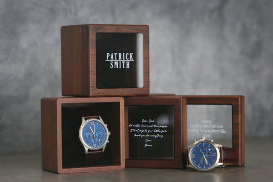 Celebrate life's most important moments with our custom engraved watch and watch boxes. Whether honoring a groom, father, graduate, or retirement, these personalized wooden watch cases create lasting memories while protecting precious timepieces.