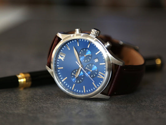 Metal Watch & Walnut Gift Box - Mens Watch, 5th Anniversary or Honeymoon Gift Husband, Wedding Day for Father of Bride Groom Dad Son Brother