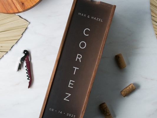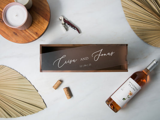 Acrylic Lid Wine Box (Design 12) - Custom Couples Gift for Bride & Groom Engagement Wedding Champagne Display Case Anniversary Housewarming
