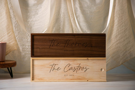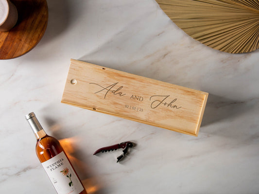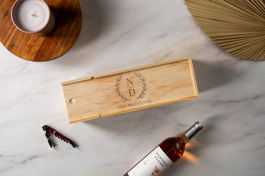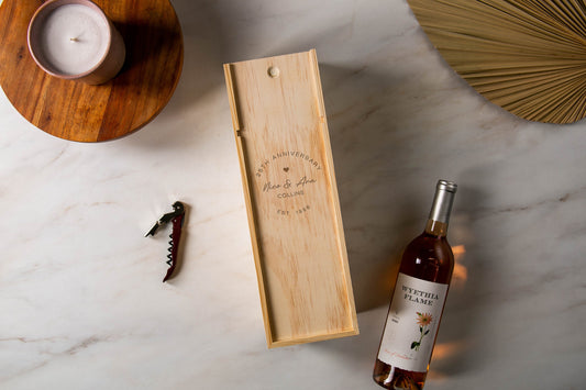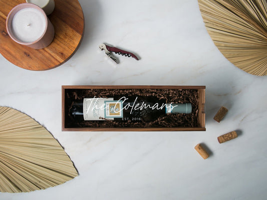 Wood Wine Box - Personalized Wine Box with Custom Text, Printed Wooden Gift Box, Birthday, Wedding & Anniversary Gift, Mom Gift