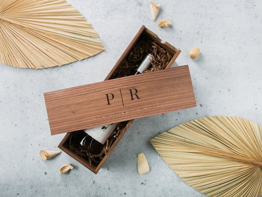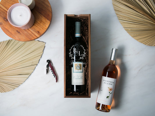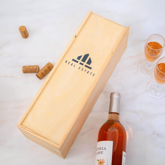 Wood Wine Box - Custom Printed Wine or Champagne Gift Box, Realtor Closing Gift with Logo, Housewarming & New Homeowner Gift, Corporate Gift