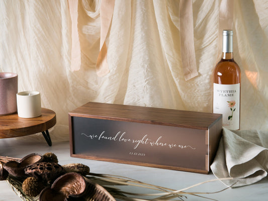 Acrylic Lid Wine Box (Design 7) - Personalized Champagne Display Case Meaningful Lyrics Anniversary Gift, We Found Love Right Where We Are