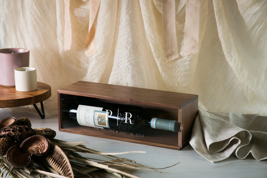 Acrylic Lid Wine Box (Design 11) - Wine Champagne Display Case Anniversary Birthday Engagement Wedding Housewarming Honeymoon Unique Gift
