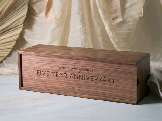 Wood Wine Box (Design 11) - Engagement Wedding Gift for the Couple, 5th Anniversary Husband Wife Wood Gift, Teachers Champagne Gift Box