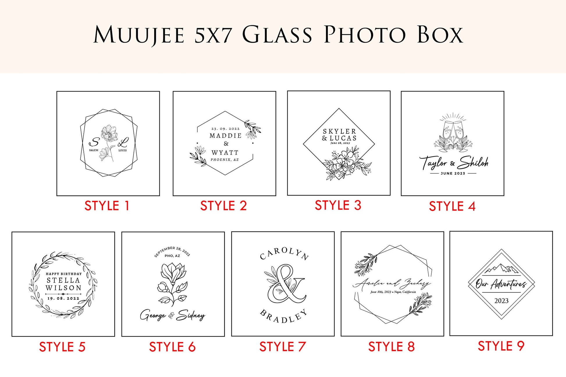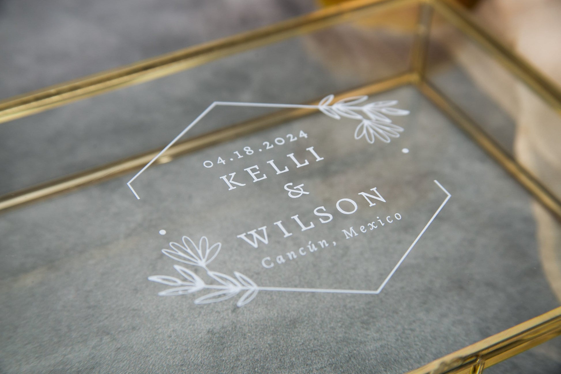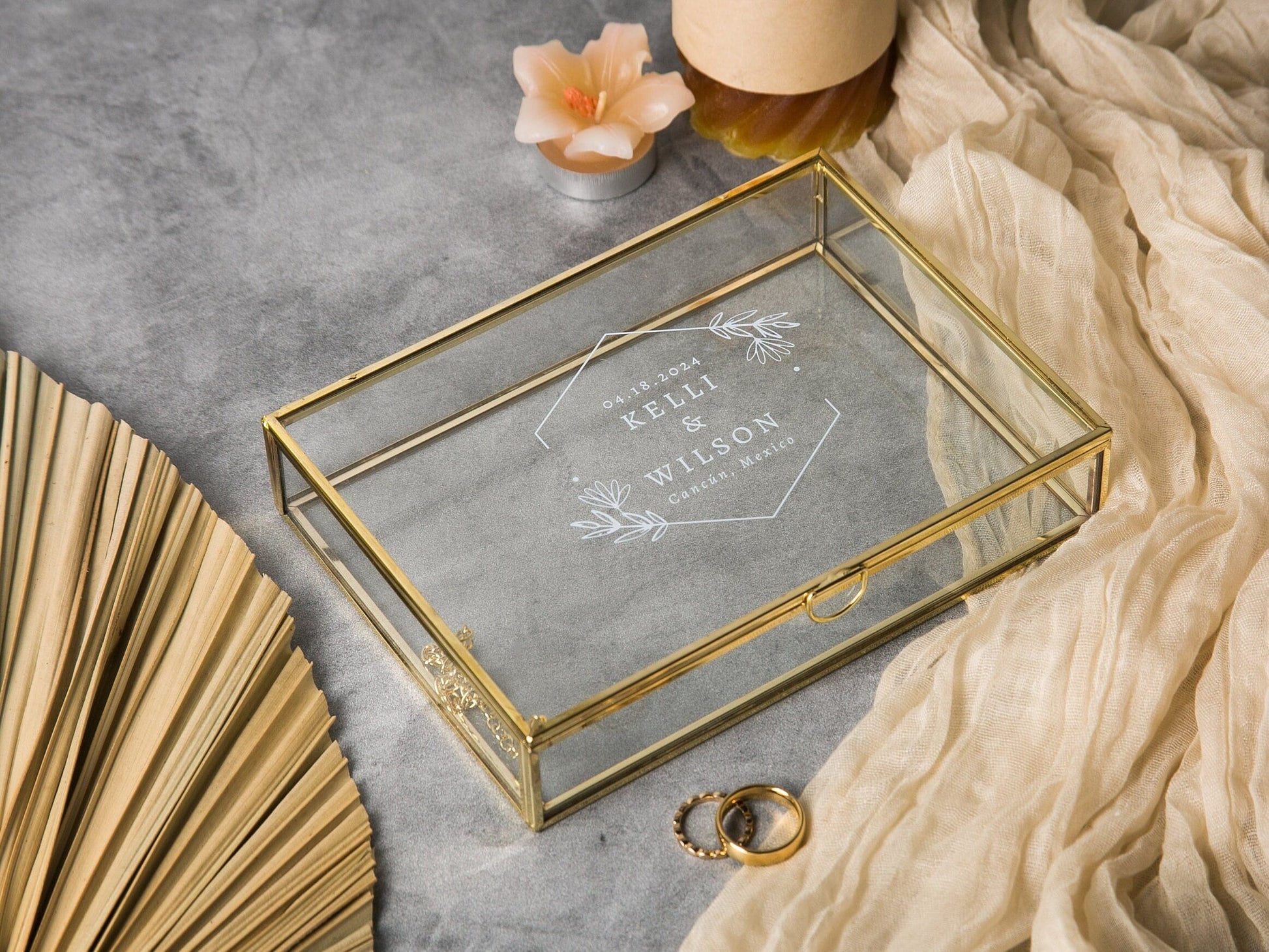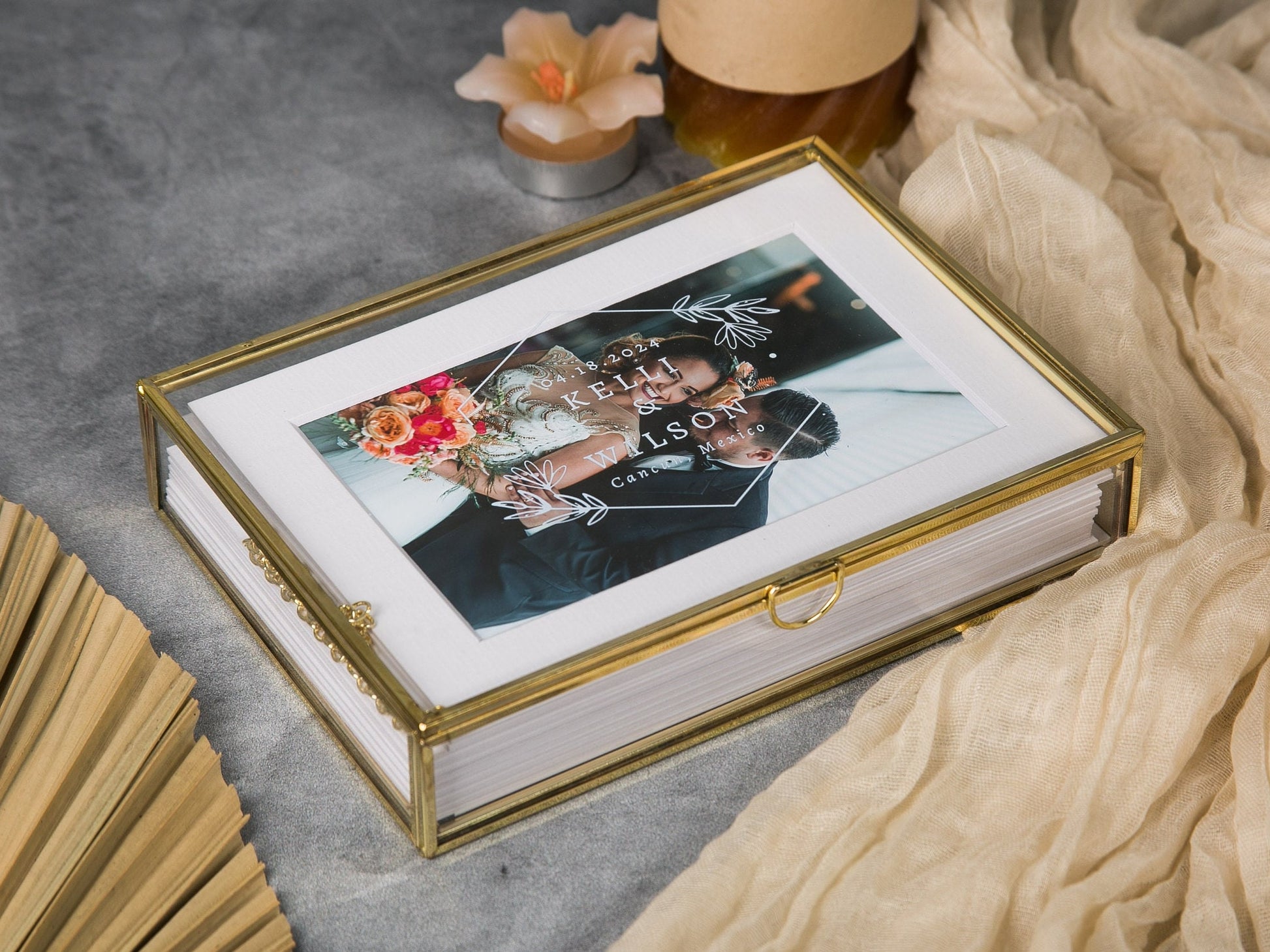 5x7" Gold Glass Photo Box - Optional Photo Mats, Picture Box, Box for Engagement Wedding Photography Gift Family Photo Box BFF Romantic Gift