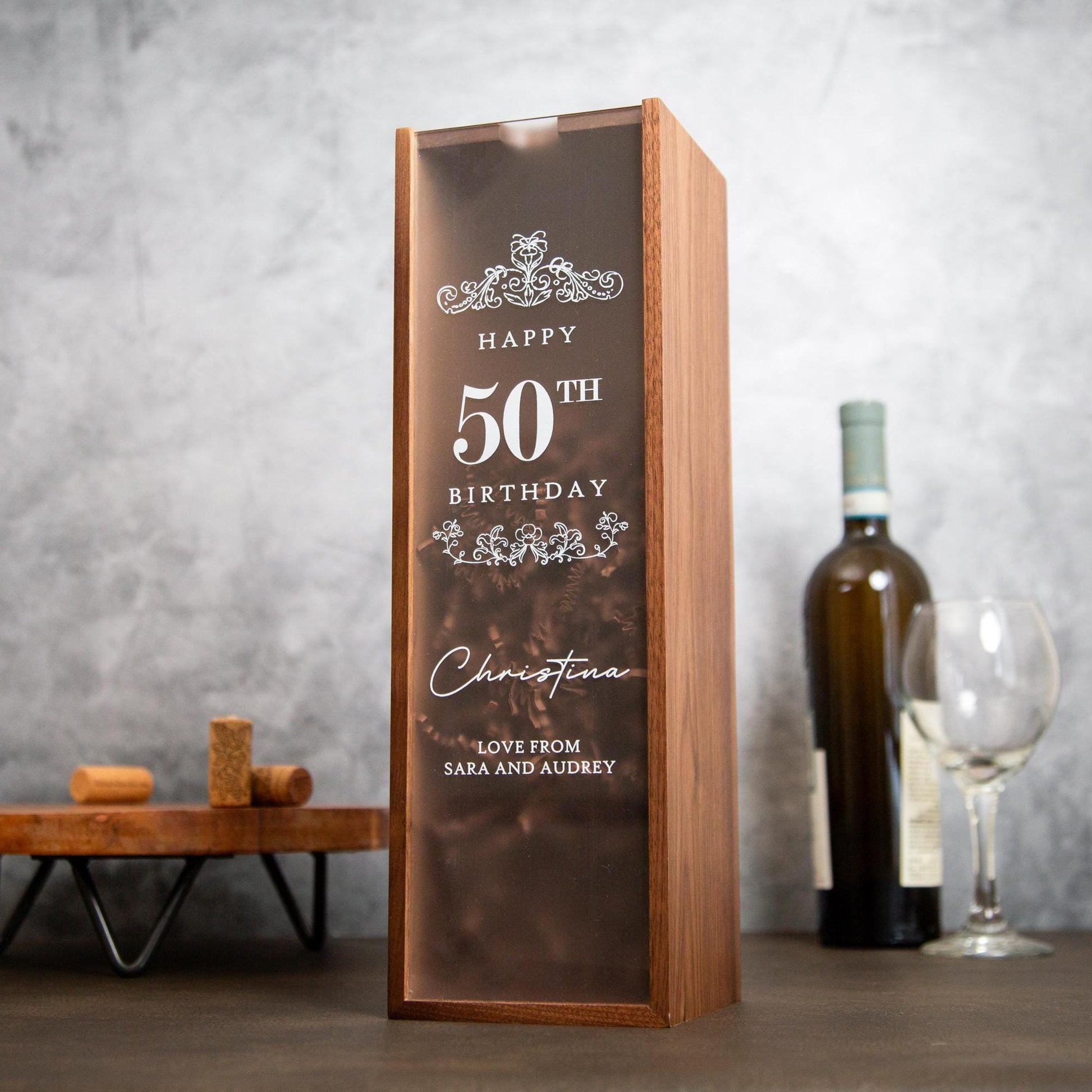 Acrylic Lid Wine Box - Custom Wooden Wine & Champagne Gift Box for Wine Lovers, Perfect Gift for Mom, Dad, Best Friend, Colleague, and Boss