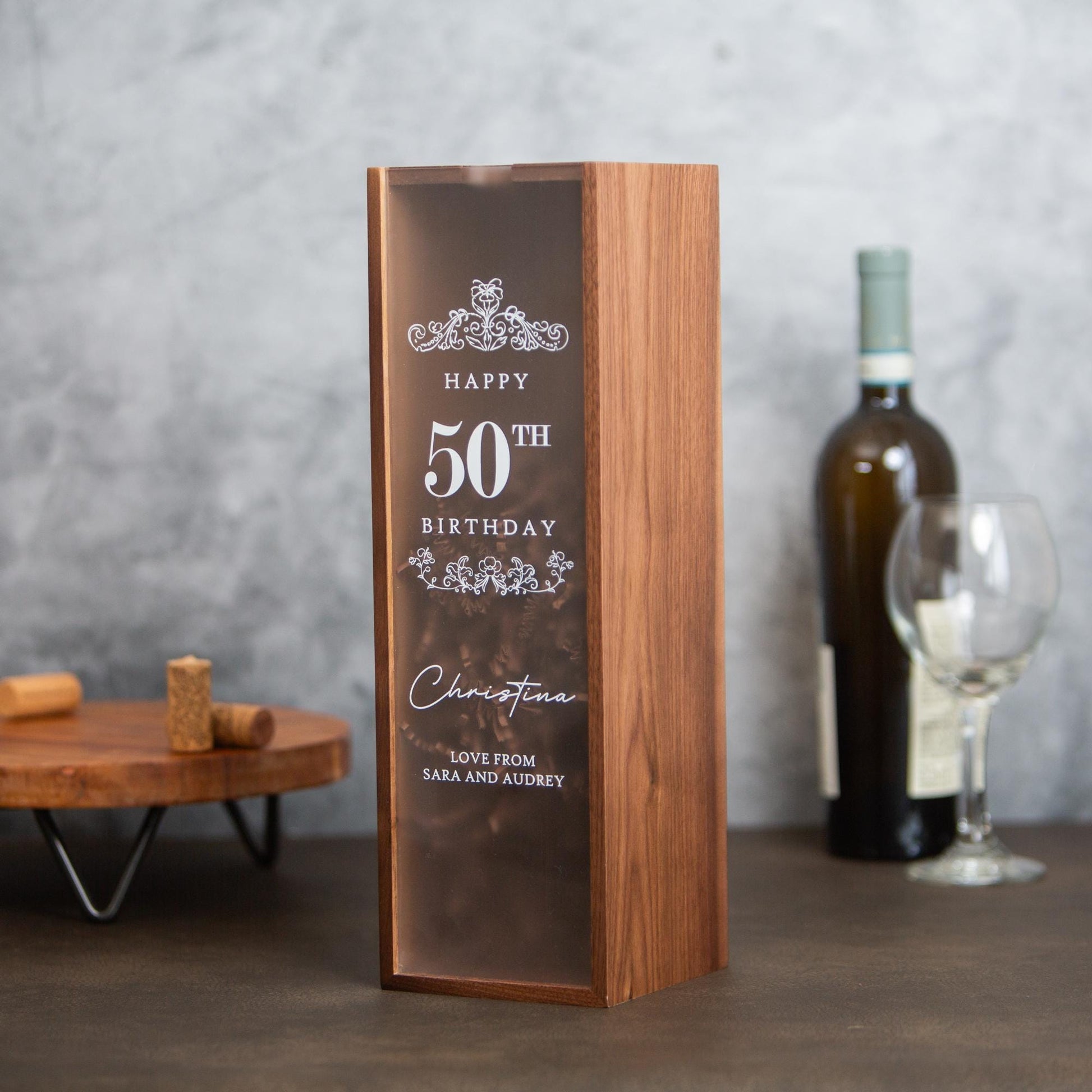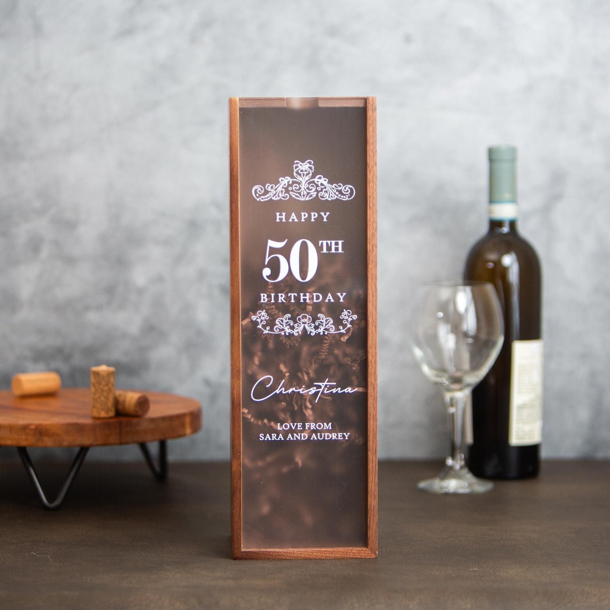 '- Custom Acrylic Lid Wine Gift Box