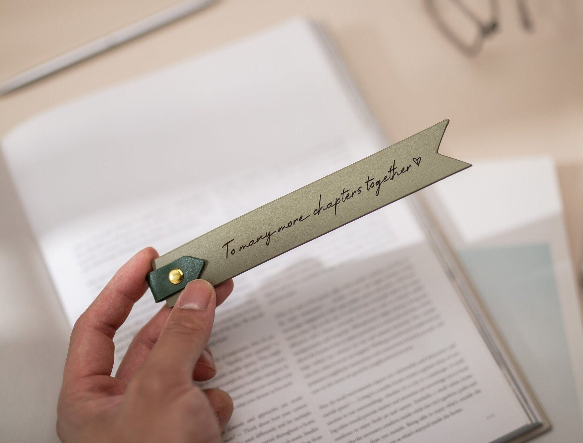 Engraved Leather Bookmark w/ Loop (D1) - Custom 3rd Anniversary Gift for Her Him, Unique Retirement Thank You Gift Idea, Book Marker