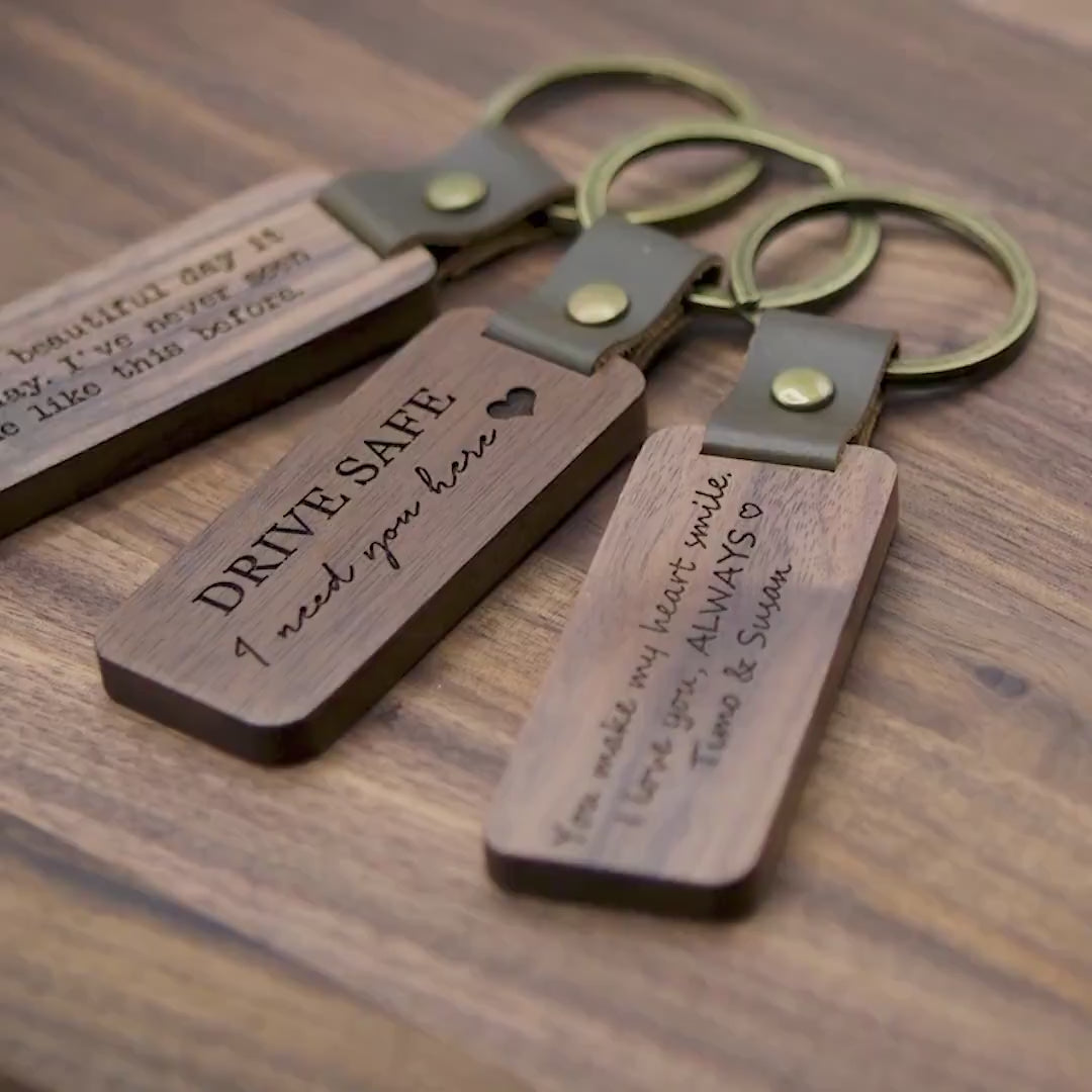 Wood Keychain - Engraved Keychain for Birthday Anniversary, Custom Key Ring, New Home Gift, Back to School or Farewell Gift for Friends BFF