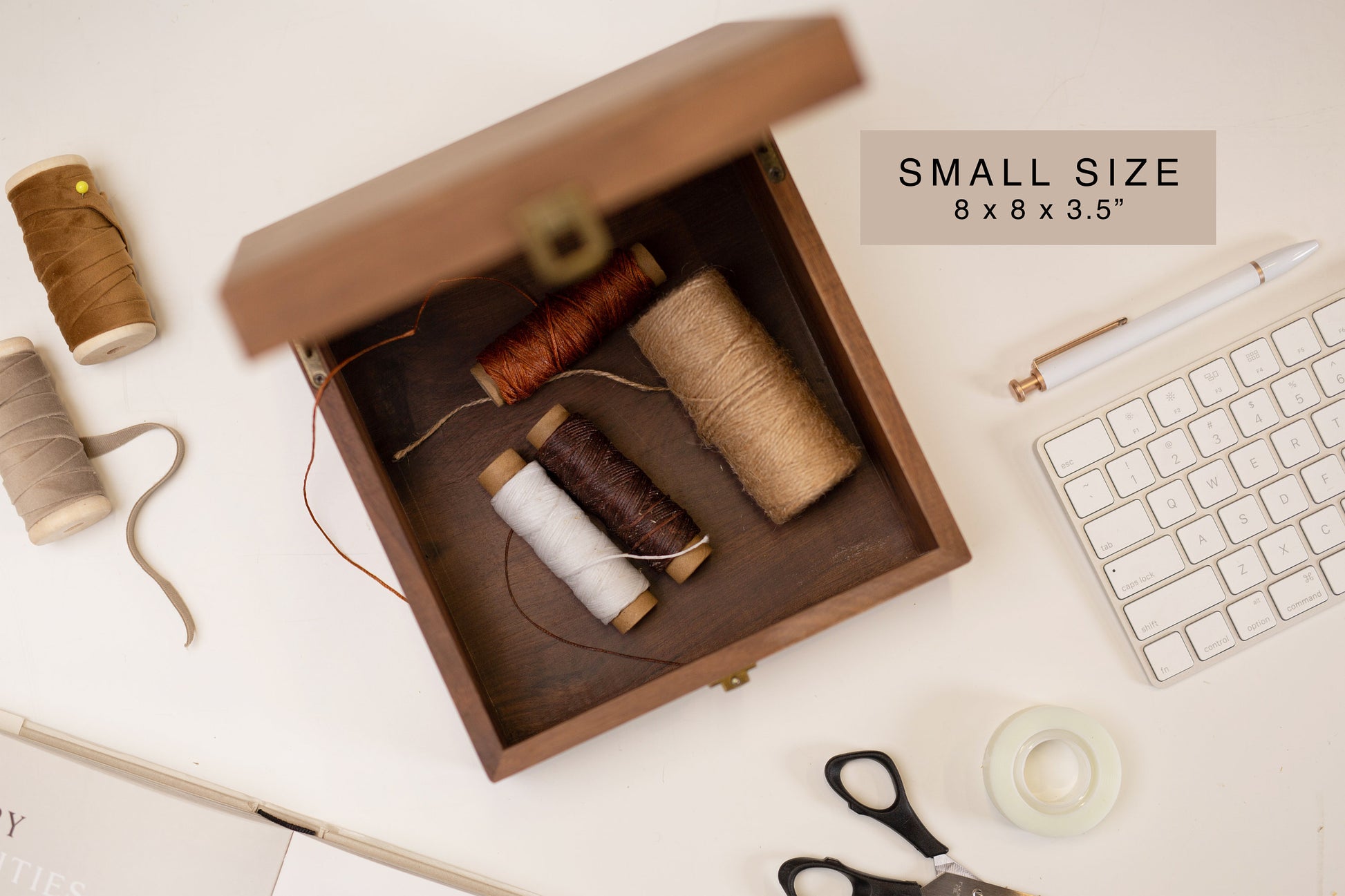 '- Walnut Wood Storage Box w/ Hinge Lid